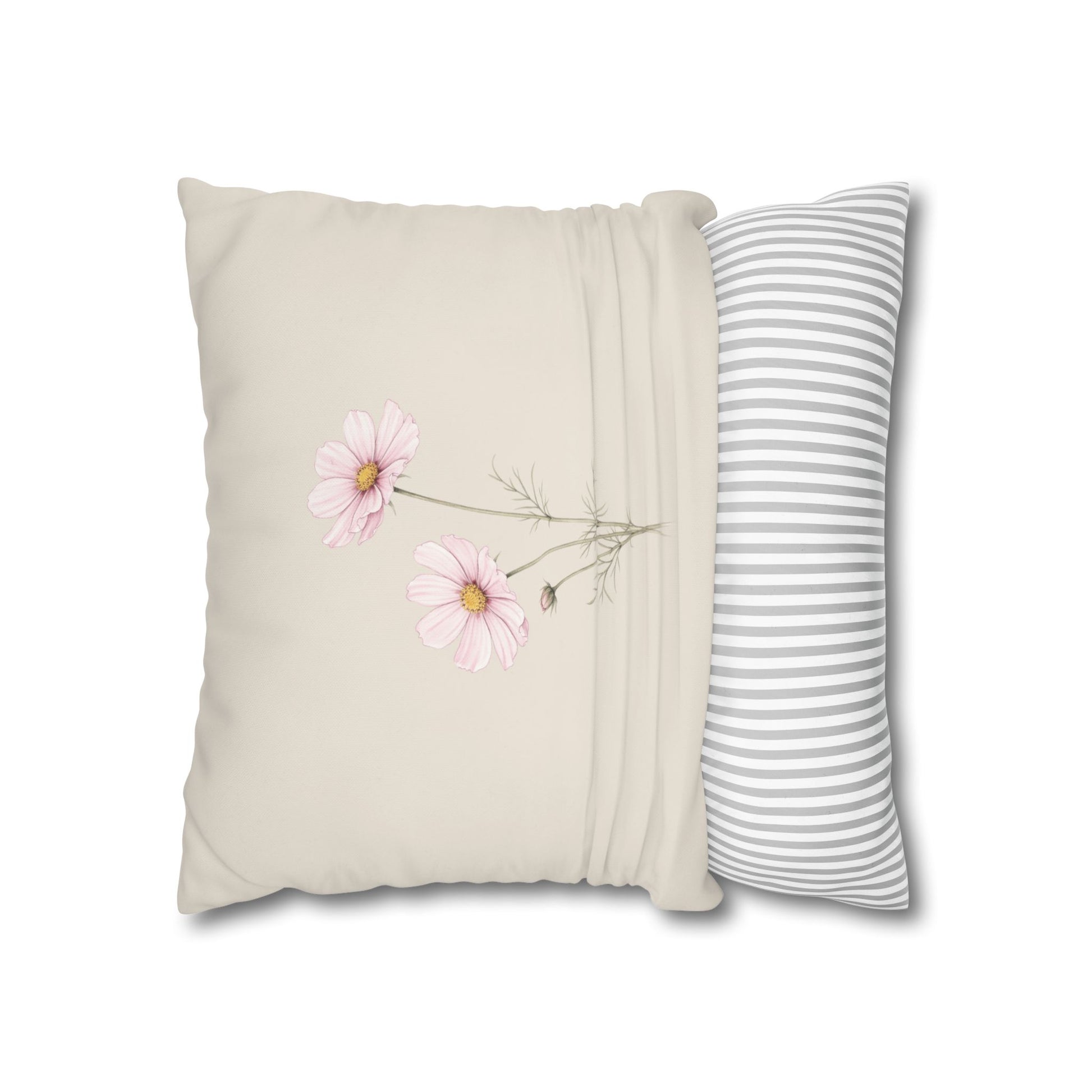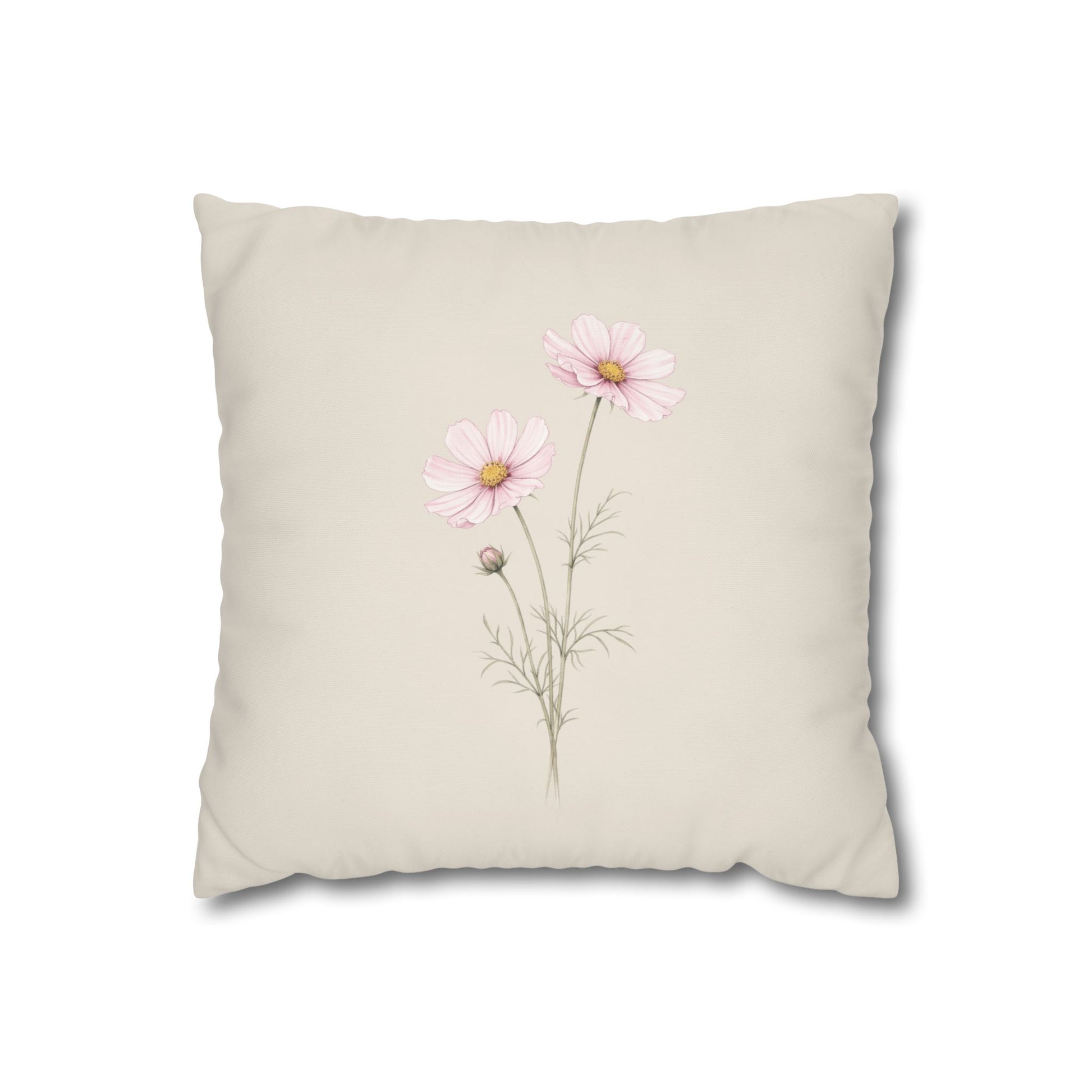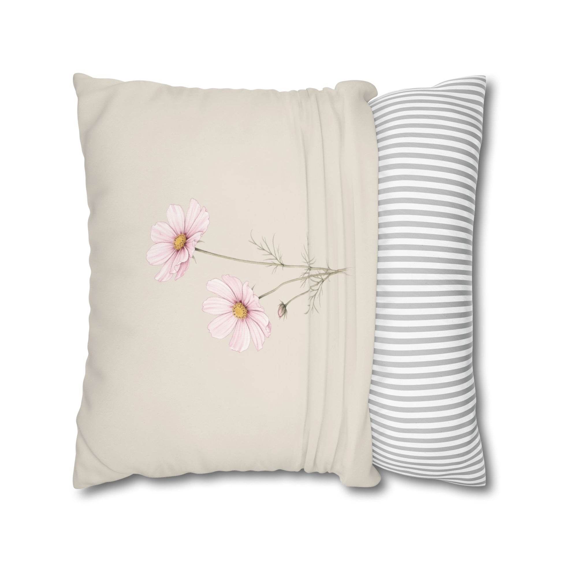 Bring a light, airy botanical touch to your space with this cosmos pillow cover, featuring soft floral artwork on a warm neutral background. The delicate blooms and gentle movement of the design add quiet interest while keeping the overall look relaxed and easy to layer.