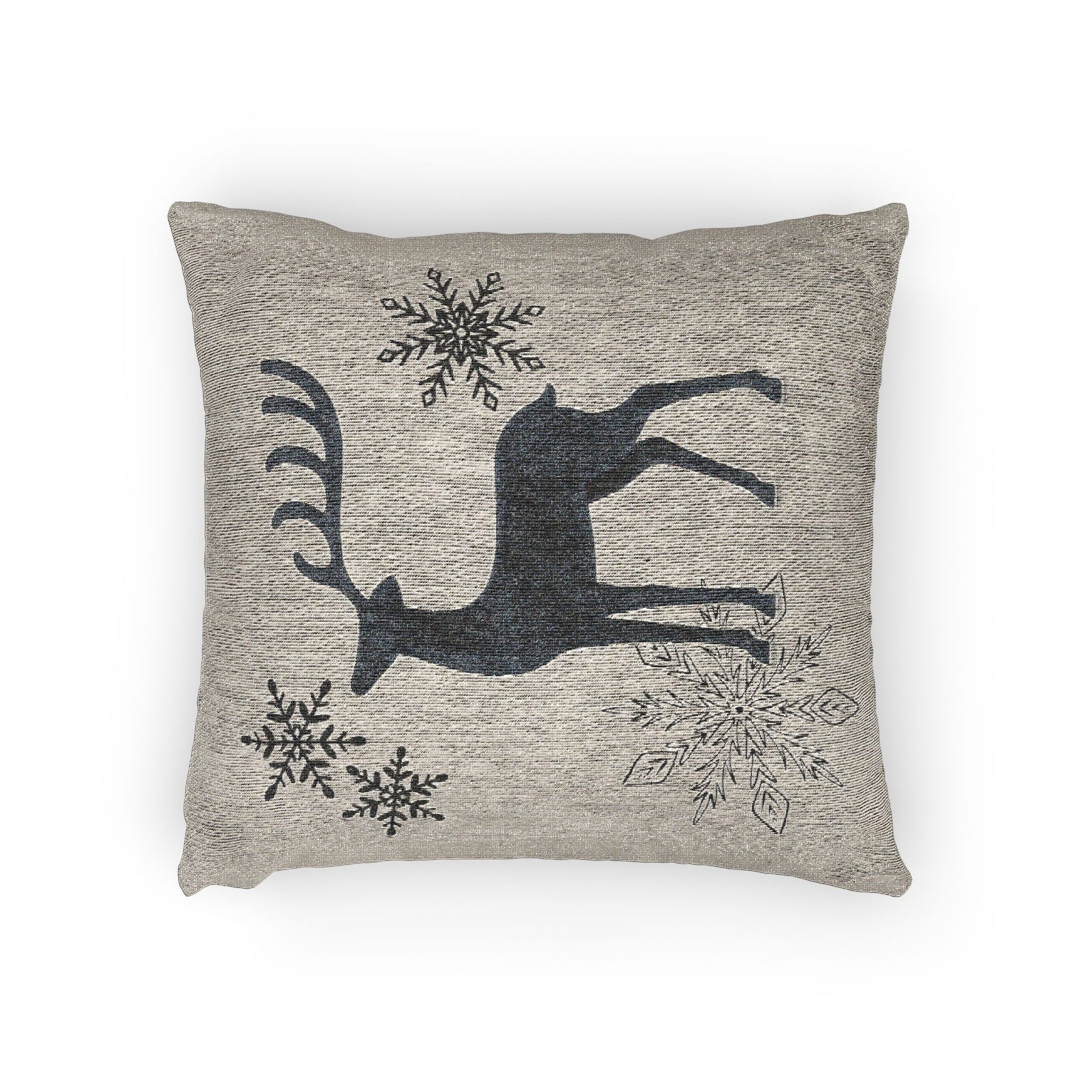 Bring a quiet Scandinavian winter mood into your holiday décor with this boutique-style reindeer pillow. The woven background and minimalist silhouette create a warm, rustic elegance that blends beautifully with modern farmhouse, cabin lodge, and neutral Christmas themes.