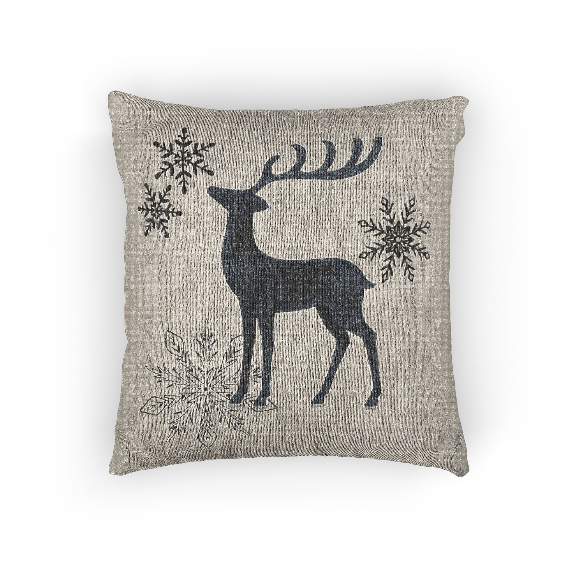 Mushroom Gray Scandinavian Reindeer Christmas Pillow, Neutral Winter Decor