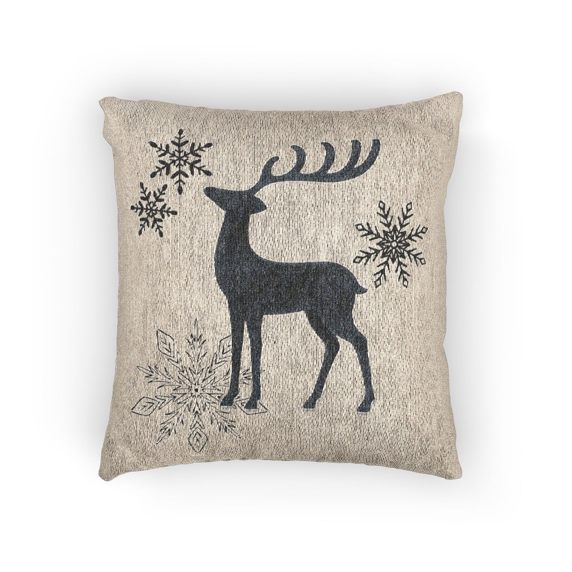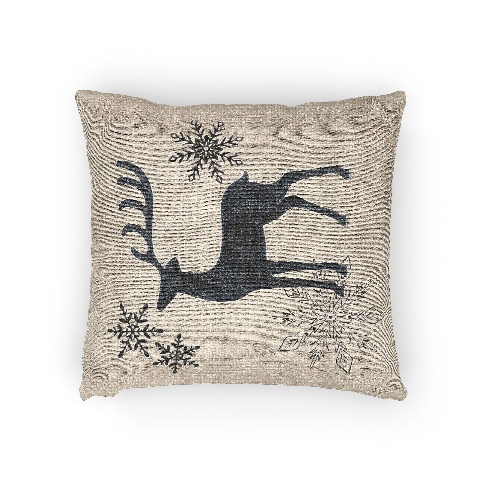 Bring a quiet, handmade winter mood into your home with this warm oatmeal colored cozy woven pillow featuring a beautifully printed reindeer design. The textured cotton-blend cover feels warm and cozy, while the printed artwork blends softly into the weave for a natural, handcrafted look.